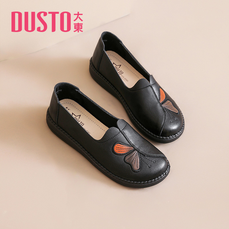 大东妈妈女鞋2025秋季新款时尚舒适圆头刺绣一脚蹬软底平底鞋5015