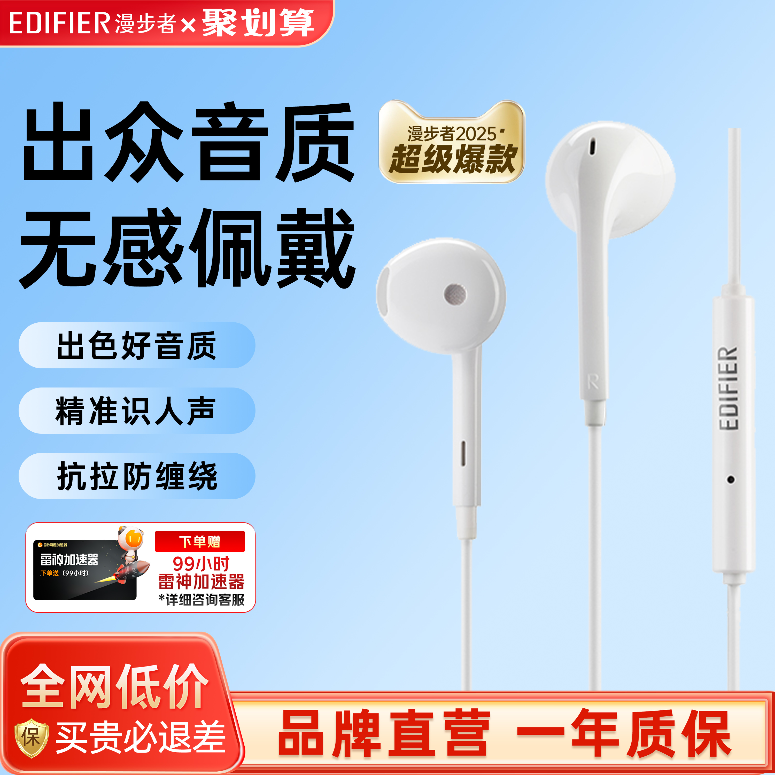 漫步者有线耳机半入耳式3.5mm圆孔圆头专用高音质手机子线控台式电脑运动游戏k歌男女带线通用降噪安卓带麦