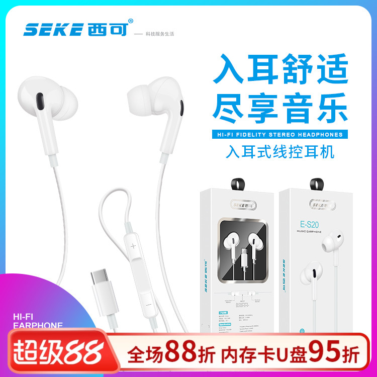 西可S20入耳式手机耳机适用男女通用Type-C重低音线控音乐耳机