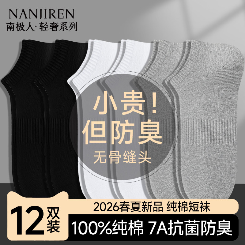 南极人袜子男款春夏季纯棉短袜防臭吸汗男袜7a抗菌男士运动船袜PB