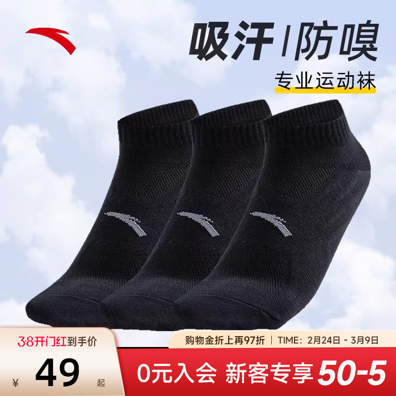 【三双装】安踏袜子男袜运动短袜男士防臭吸汗弹力篮球袜男款棉袜