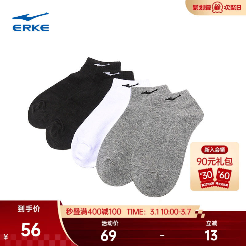 鸿星尔克袜子男款春季男士运动短袜官方男生透气棉袜跑步男袜女袜