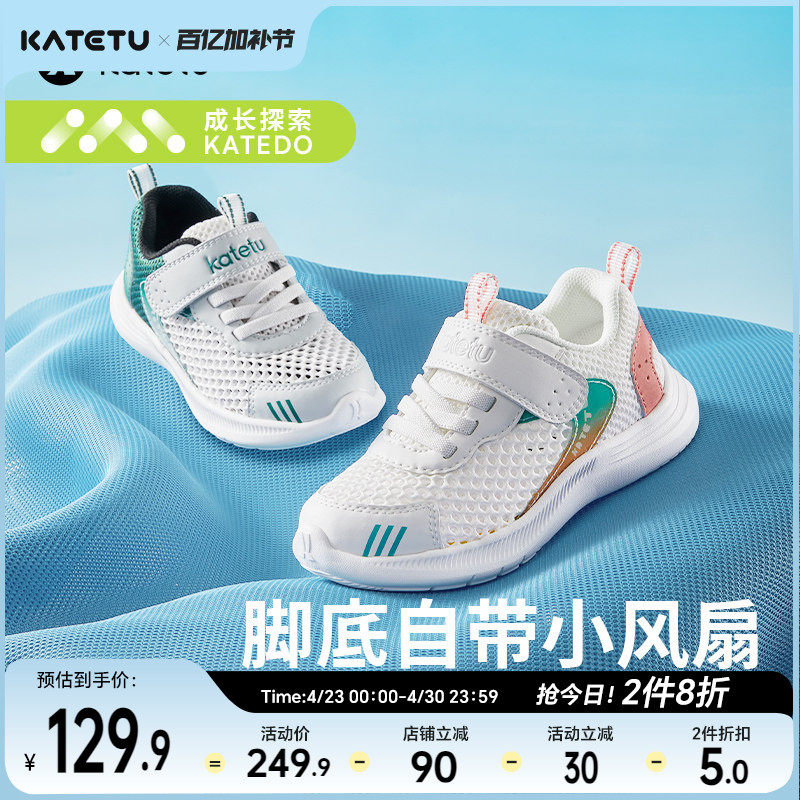 卡特兔儿童运动鞋男童2025夏季网眼透气小白鞋篮球鞋女童跑步鞋