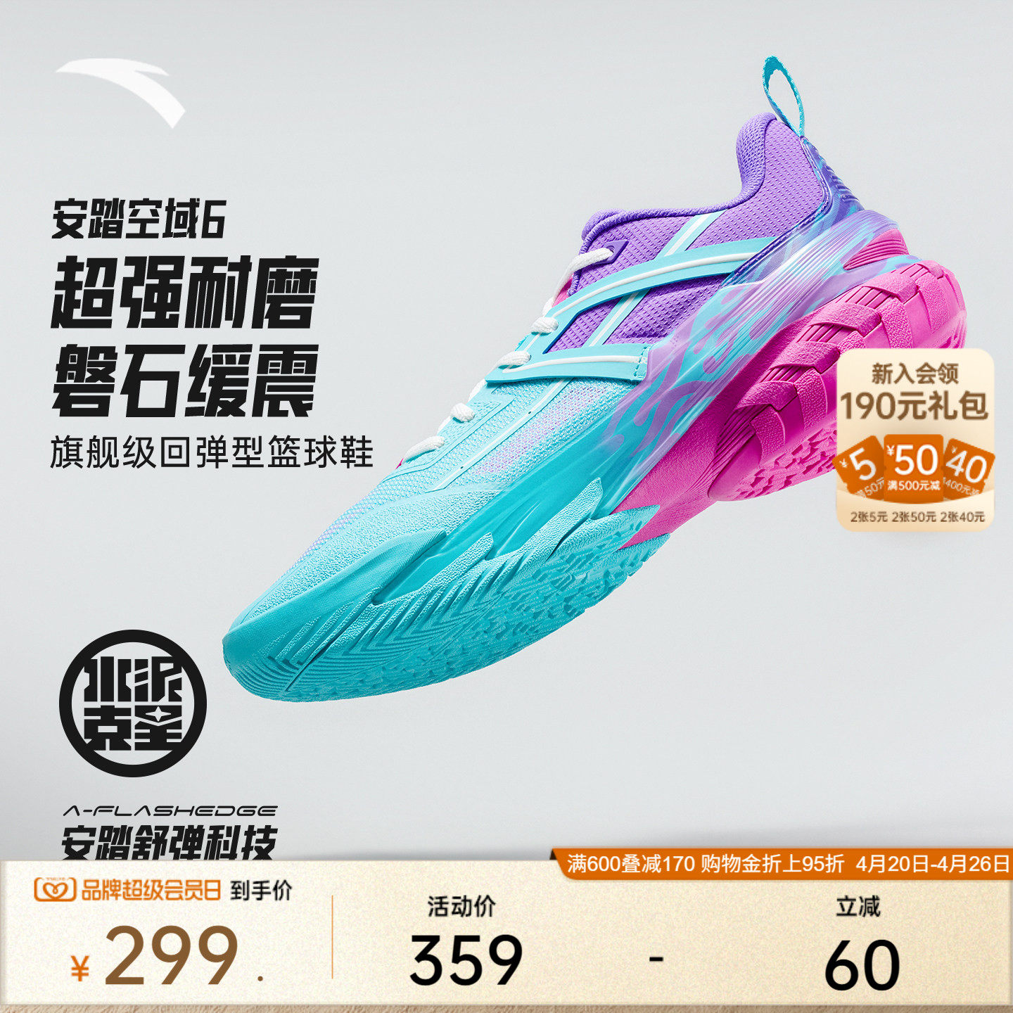 安踏空域6夏季版丨低帮篮球鞋男专业实战缓震防滑耐磨男鞋运动鞋