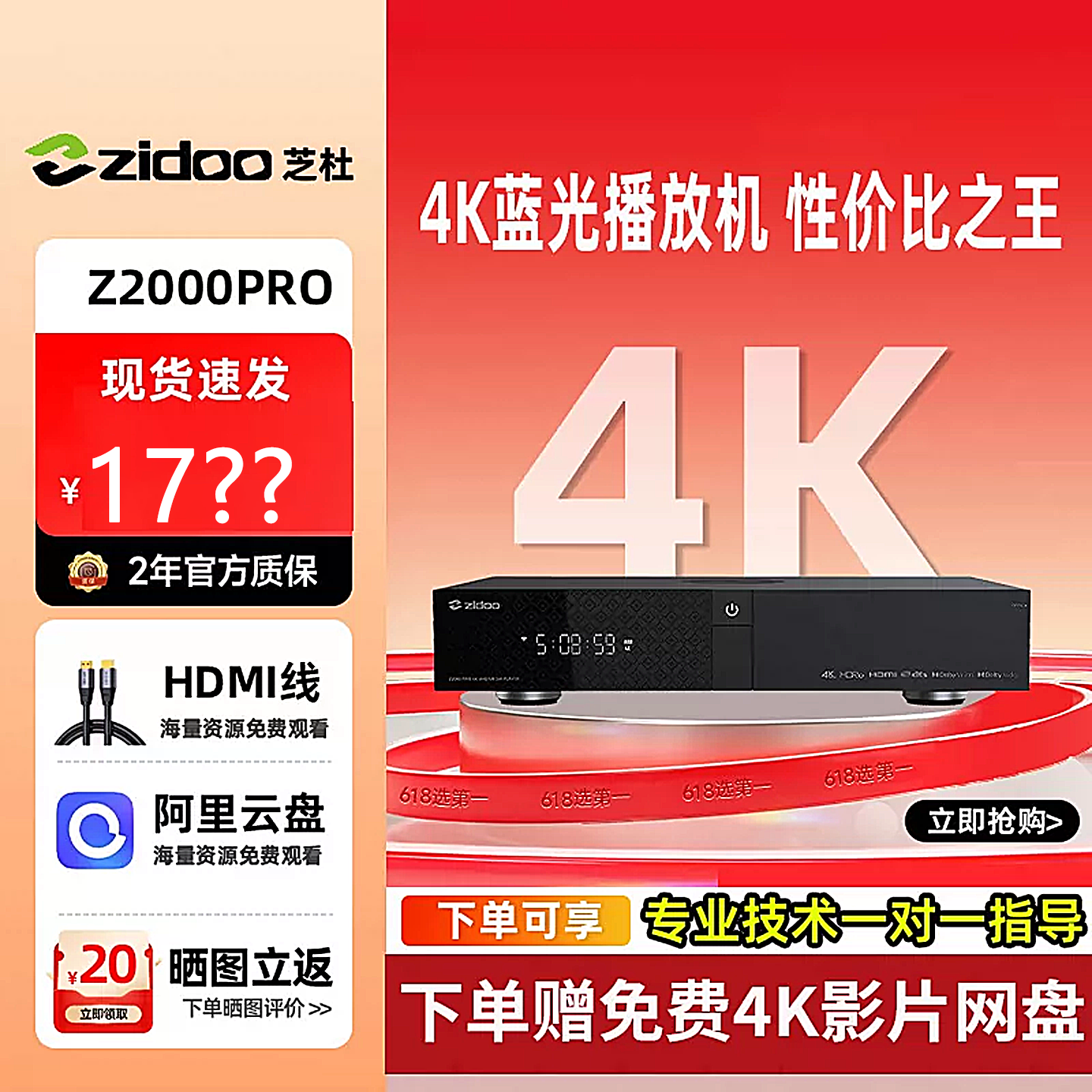 芝杜Z2000PRO4K杜比视界全景声蓝光硬盘播放器智能网络家庭影院