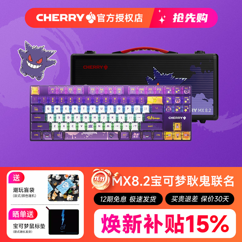 CHERRY樱桃MX8.2无线三模RGB机械键盘游戏电竞87键宝可梦耿鬼联盟