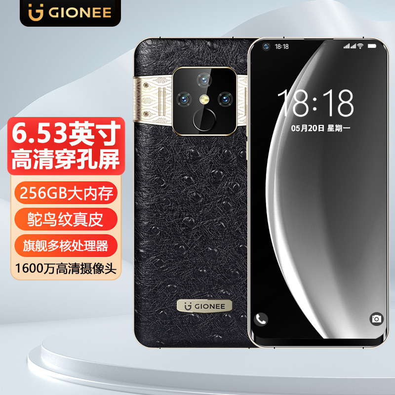 金立8核+256GB高端商务鸵鸟纹真皮八核智能手机6.53英寸大屏4G全网通4950毫安超长待机双卡双待