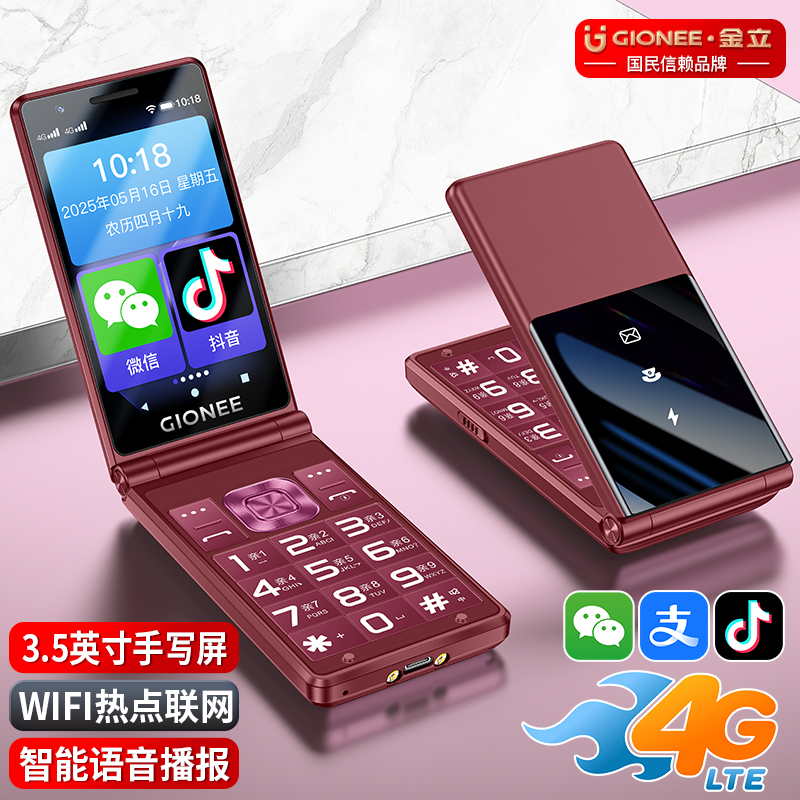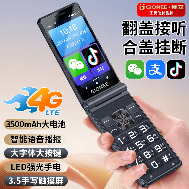 金立老人翻盖智能手机3.5英寸微信可视频抖音按键触摸屏长续航老年机4G全网通双卡双待学生备用