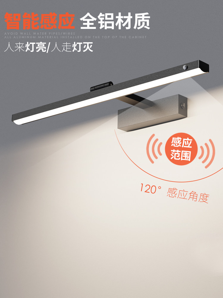 浴室柜人体传感器镜子前灯Led浴室免打孔浴室现代简单厕所镜子柜