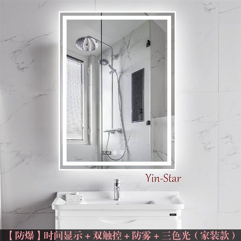 免打孔浴室镜Yin-Star智能触摸屏防雾卫生间挂墙式镜子前灯化妆镜