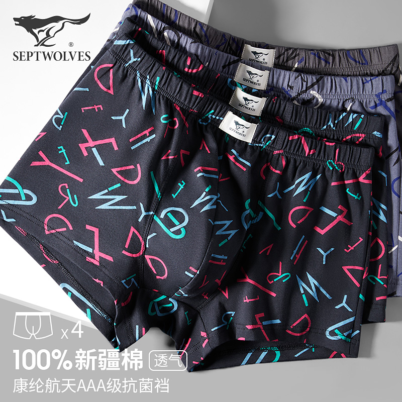 七匹狼男士内裤男纯棉平角裤透气抗菌大码短裤潮流裤衩四角底裤头
