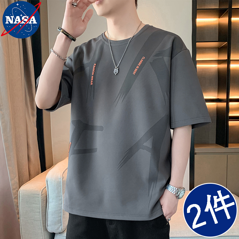 NASA潮流休闲冰丝短袖t恤男士夏季2025新款大码肥佬半袖宽松上衣