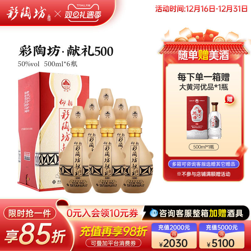 仰韶彩陶坊献礼500 白酒整箱6瓶单瓶500ml礼盒装50度高度纯粮特价