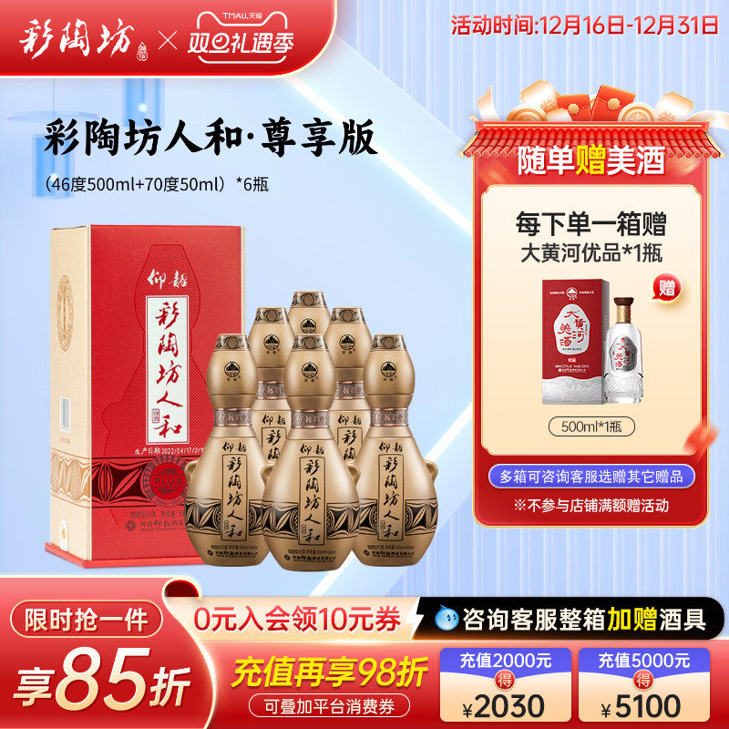 仰韶彩陶坊人和 尊享加量版白酒整箱6瓶单瓶550ml礼盒装纯粮特价
