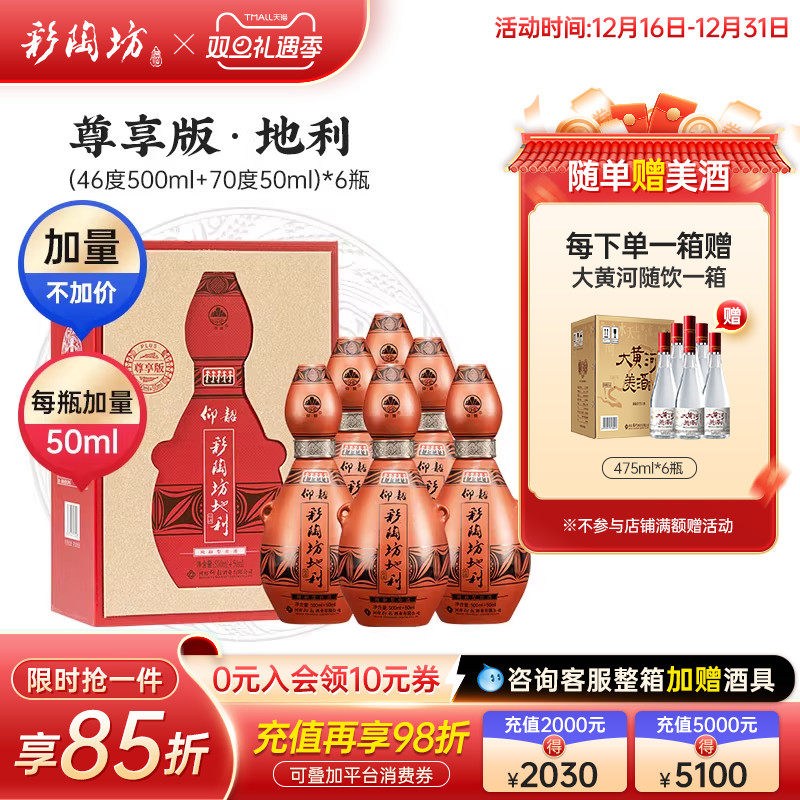 仰韶彩陶坊地利加量装白酒整箱6瓶单瓶礼盒装550ml尊享版纯粮特价