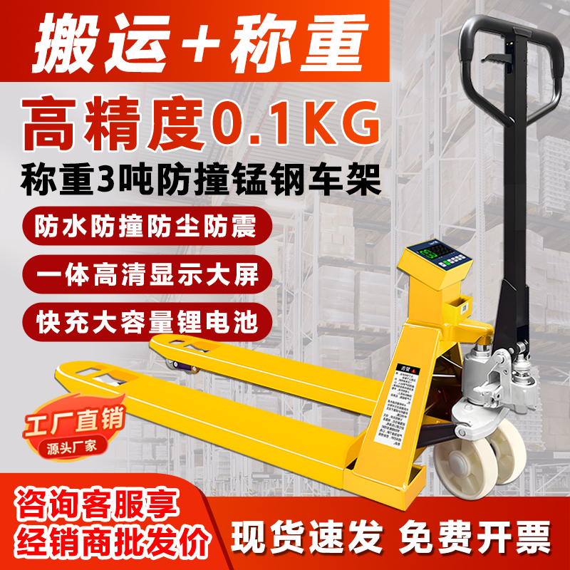 新款电子秤叉车叉车称重搬运车2吨3吨带称手动手推称重液压地牛秤