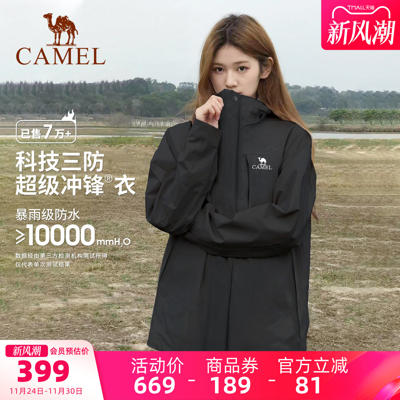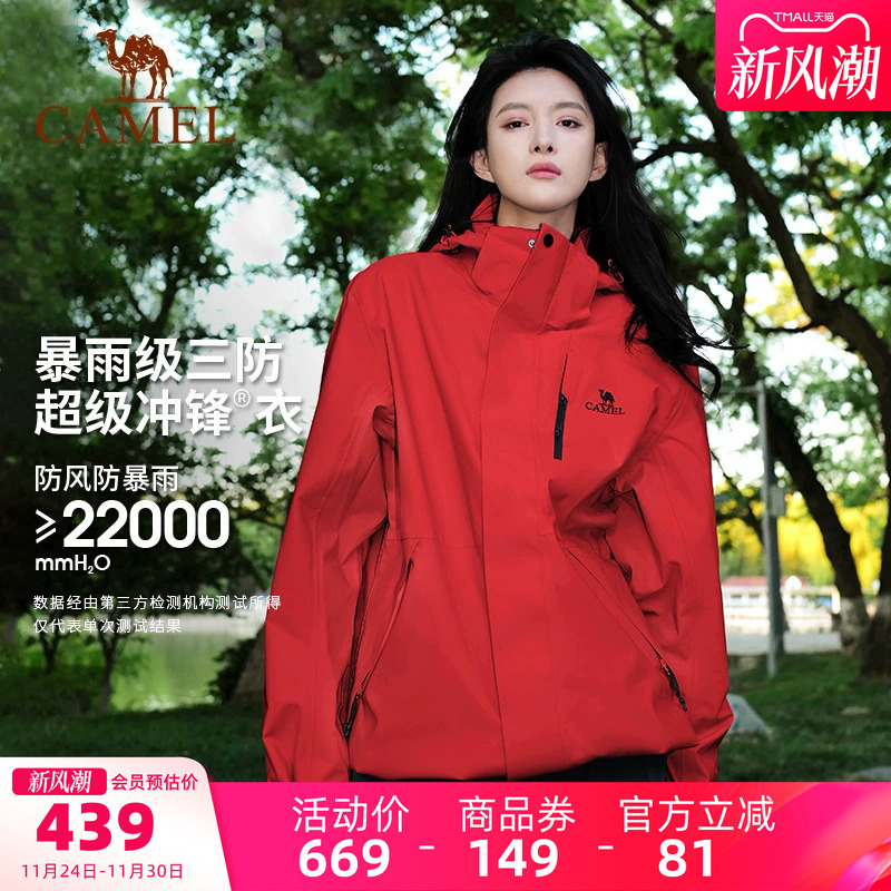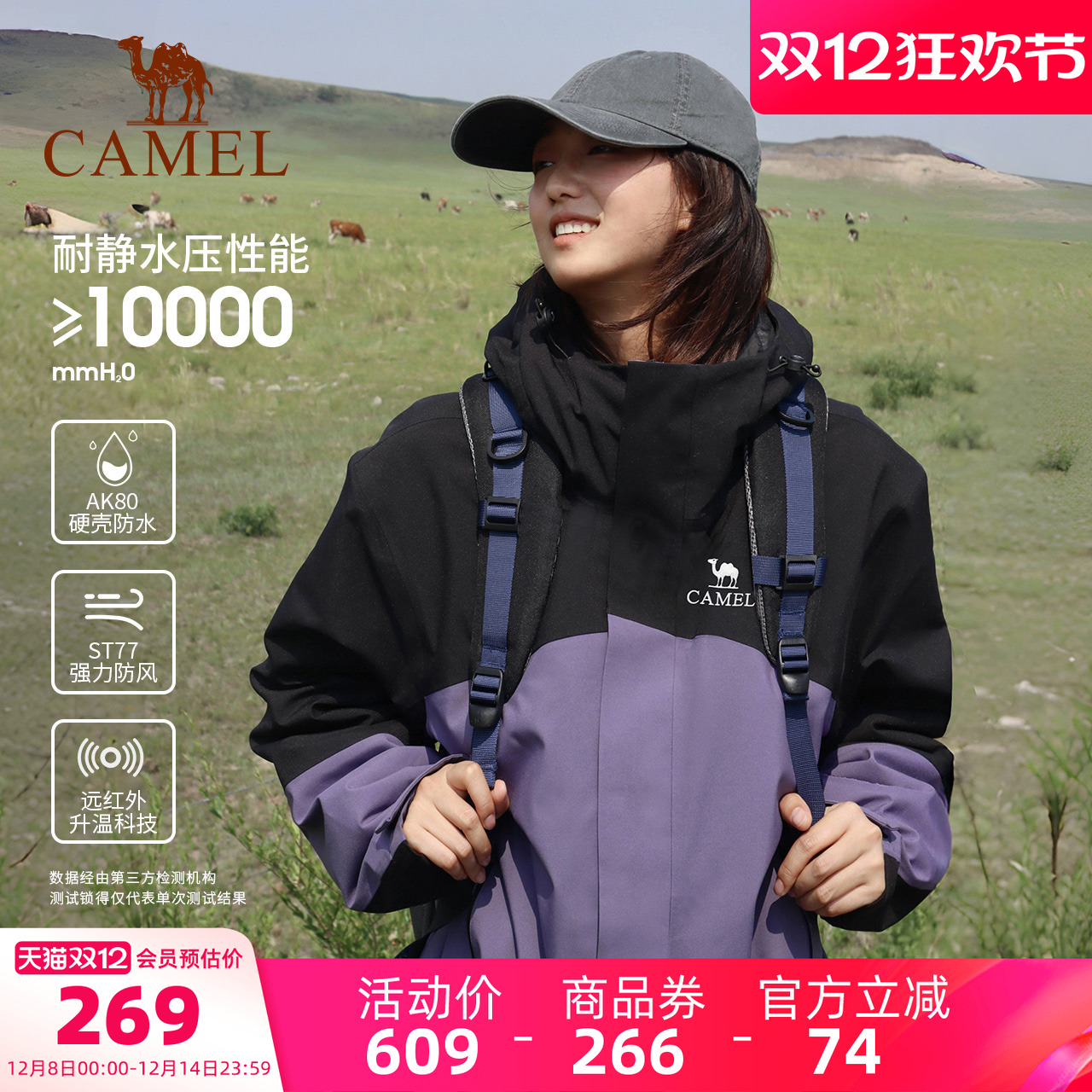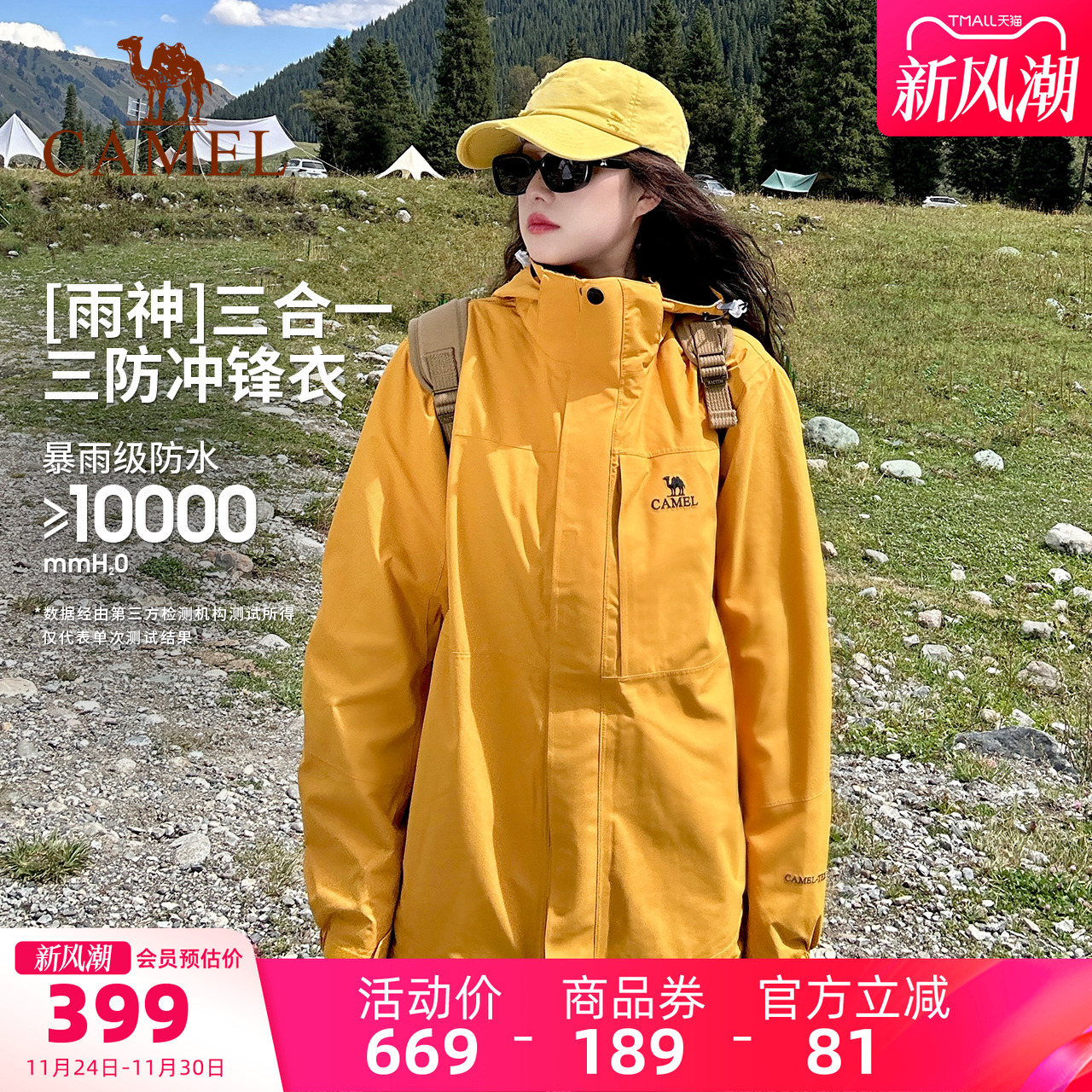 骆驼户外雨神冲锋衣女款三合一冬季加厚防风防水外套男旗舰店正品