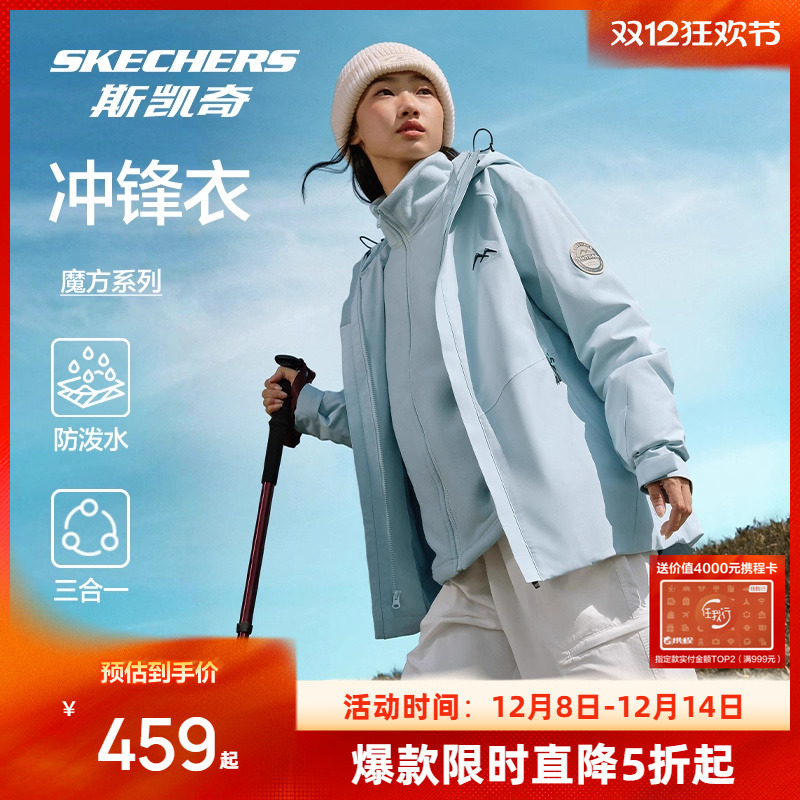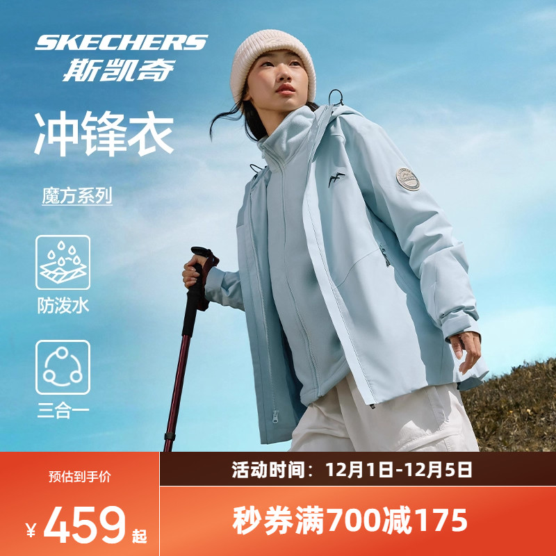 斯凯奇魔方冲锋衣冬季男女三合一保暖羽绒服户外抓绒内胆防水外套