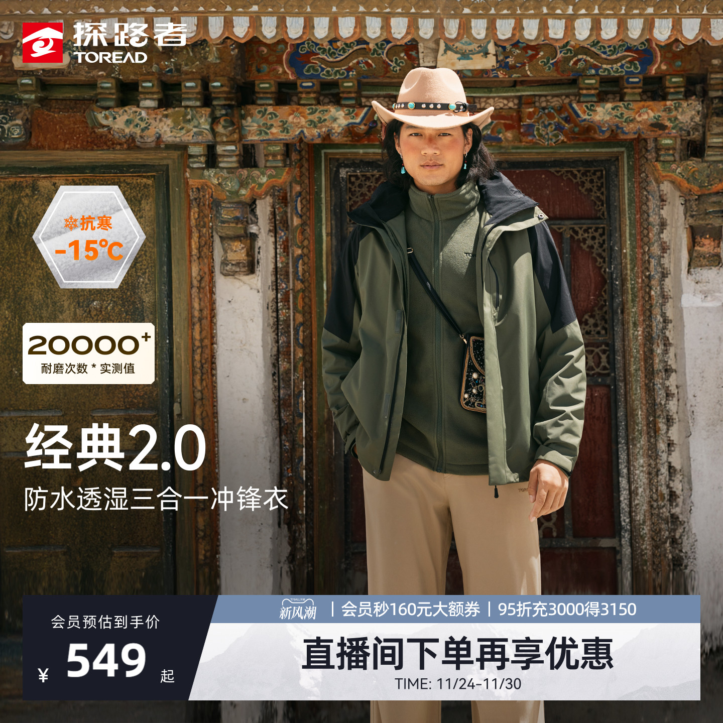 探路者三合一冲锋衣2025新款冬季防风防水专业户外保暖外套男女