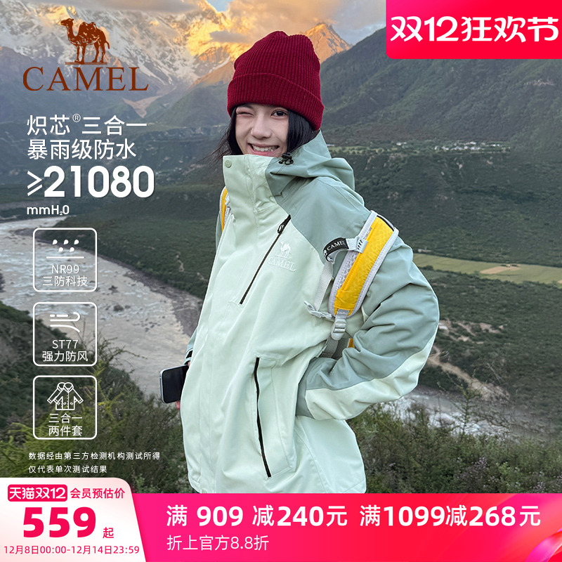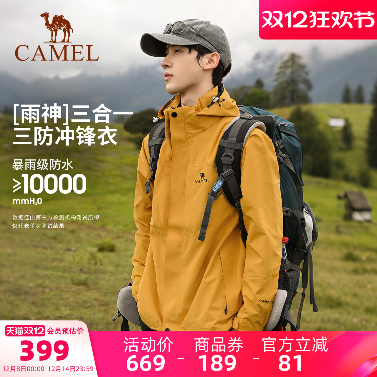骆驼户外雨神冲锋衣男三合一羽绒服冬季防水外套女三防旅游登山服