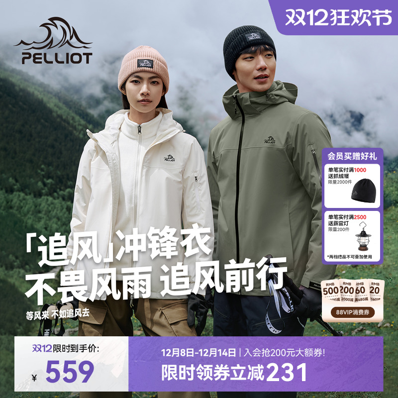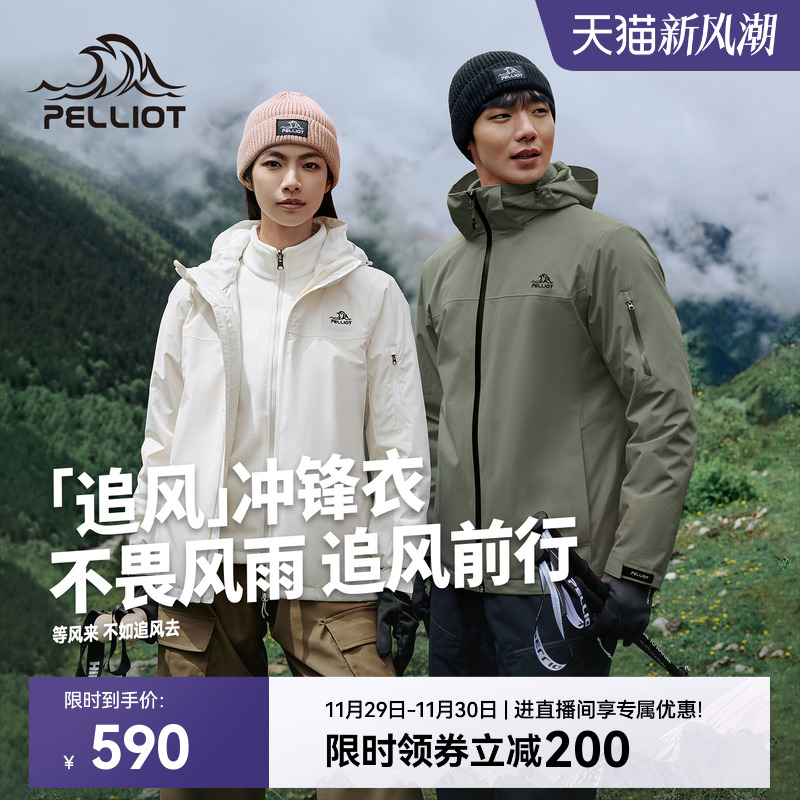 【追风】伯希和户外冲锋衣女冬季三合一抓绒内胆防风防水登山服男