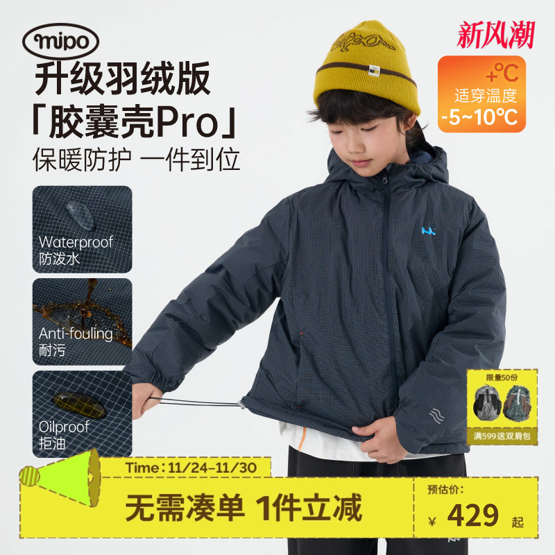mipo冬季儿童冲锋羽绒服三防运动男女童户外防风防水保暖鸭绒上衣