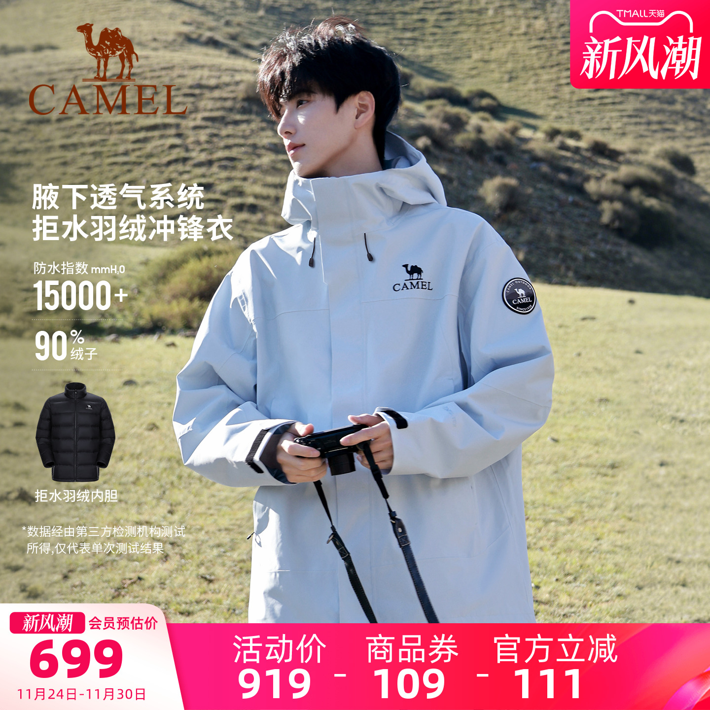 骆驼冲锋衣三合一羽绒服男女冬季新款羽绒内胆外套防风防水登山服