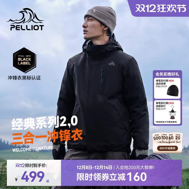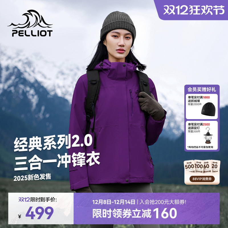 【经典2.0】伯希和户外羽绒冲锋衣男冬季三合一防水外套羽绒服女