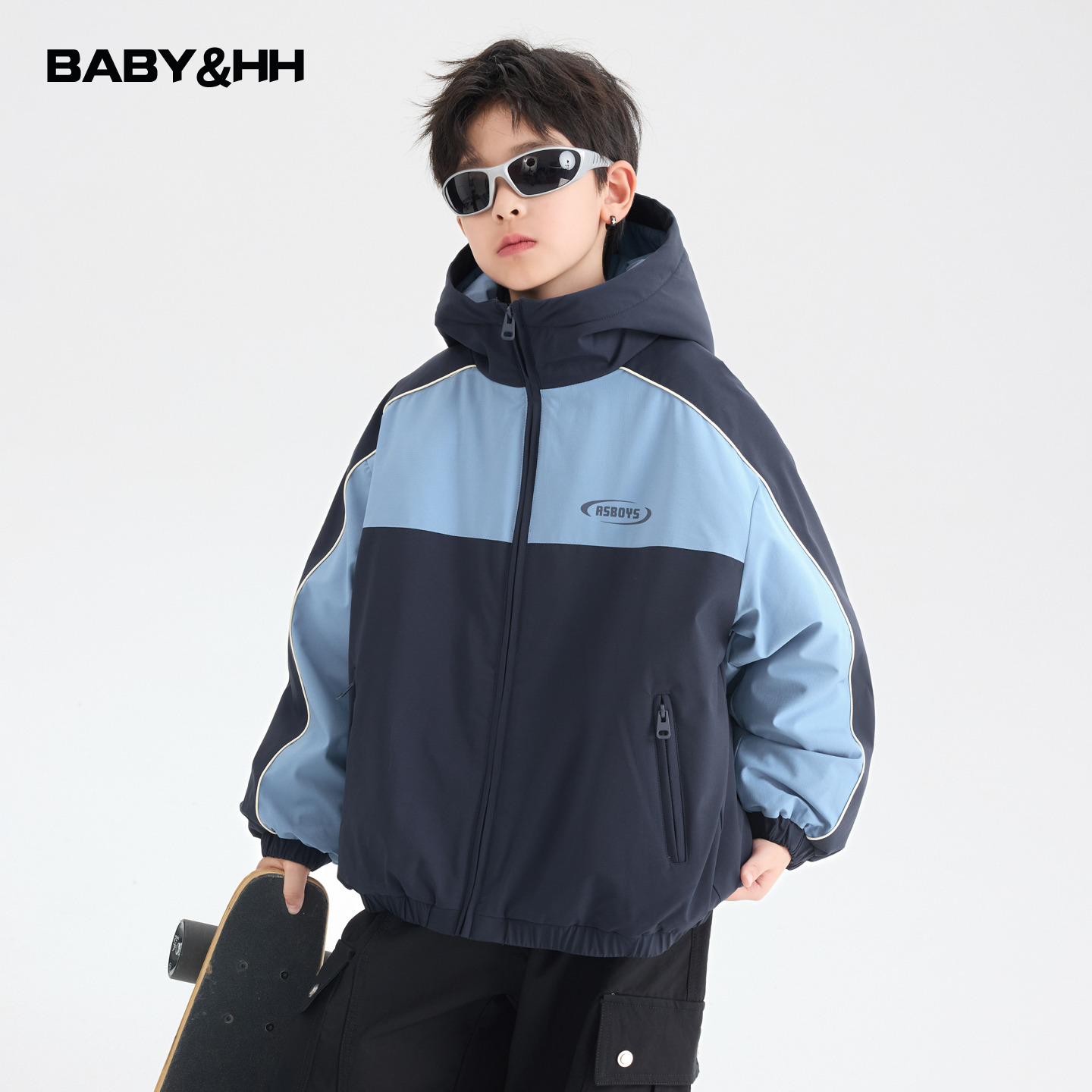 男大童冬季撞色运动防水连帽冲锋衣棉服2025新款儿童夹棉加厚外套