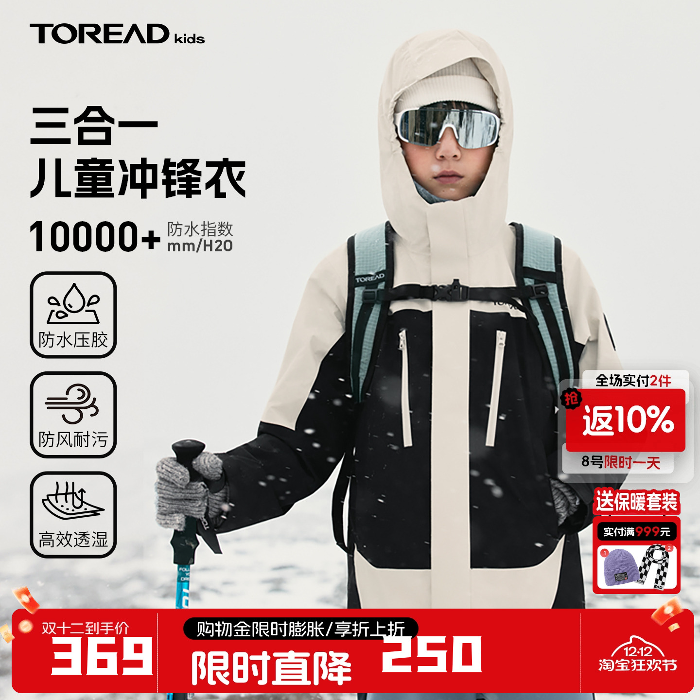 探路者儿童冲锋衣防风防水透气男童女童户外加厚加绒冬季外套风衣