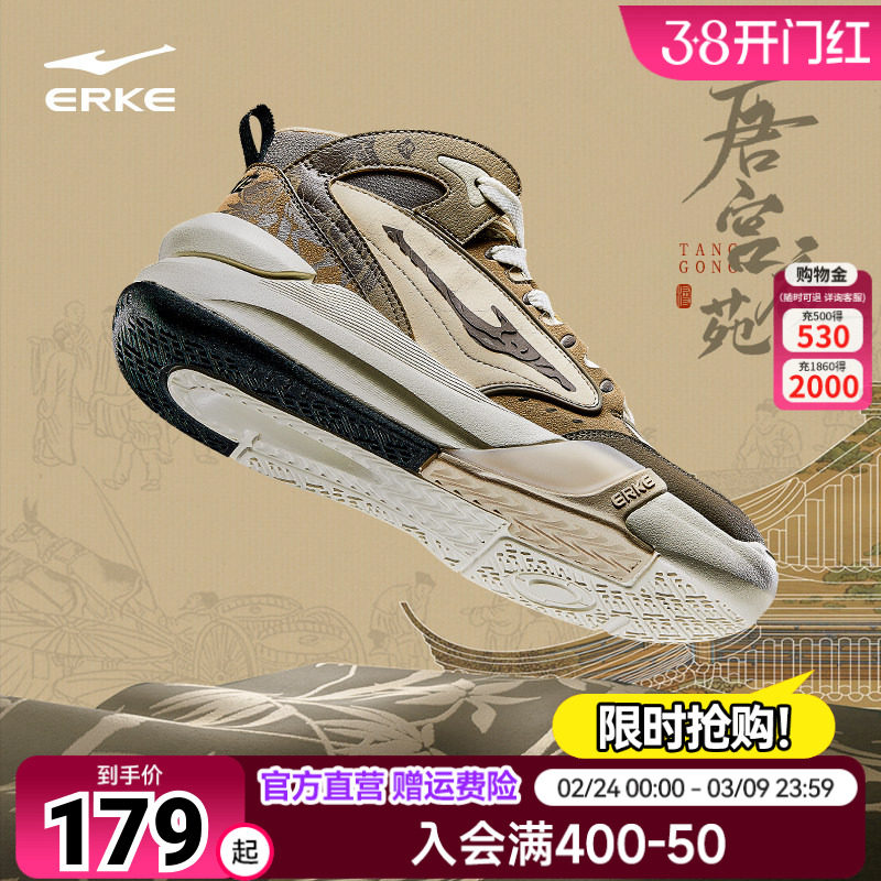 唐宫夜苑鸿星尔克高帮板鞋休闲鞋秋季滑板鞋男鞋厚底增高运动鞋男