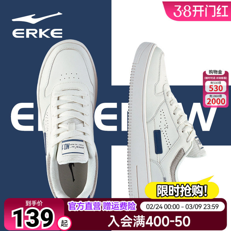 鸿星尔克男板鞋 男士板鞋小白鞋休闲鞋空军一号滑板鞋男鞋 鞋子男