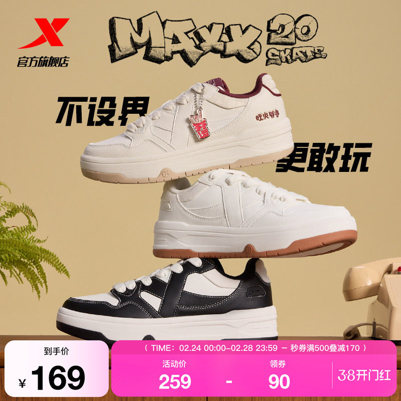 特步maxx2|板鞋男鞋春季新款情侣鞋黑白百搭休闲鞋滑板运动鞋子女