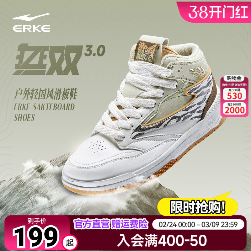无双大师鸿星尔克高帮复古板鞋中帮滑板鞋男鞋厚底运动休闲鞋男士