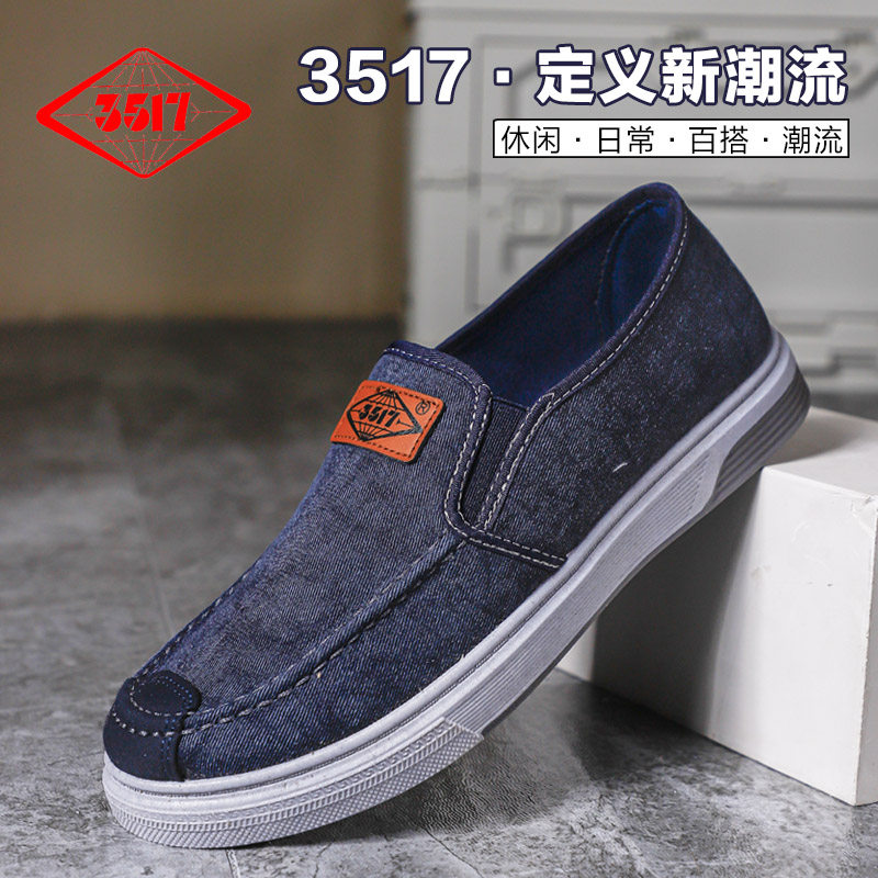 3517春夏男士透气一脚蹬老北京布鞋运动休闲懒人百搭防滑板鞋男鞋