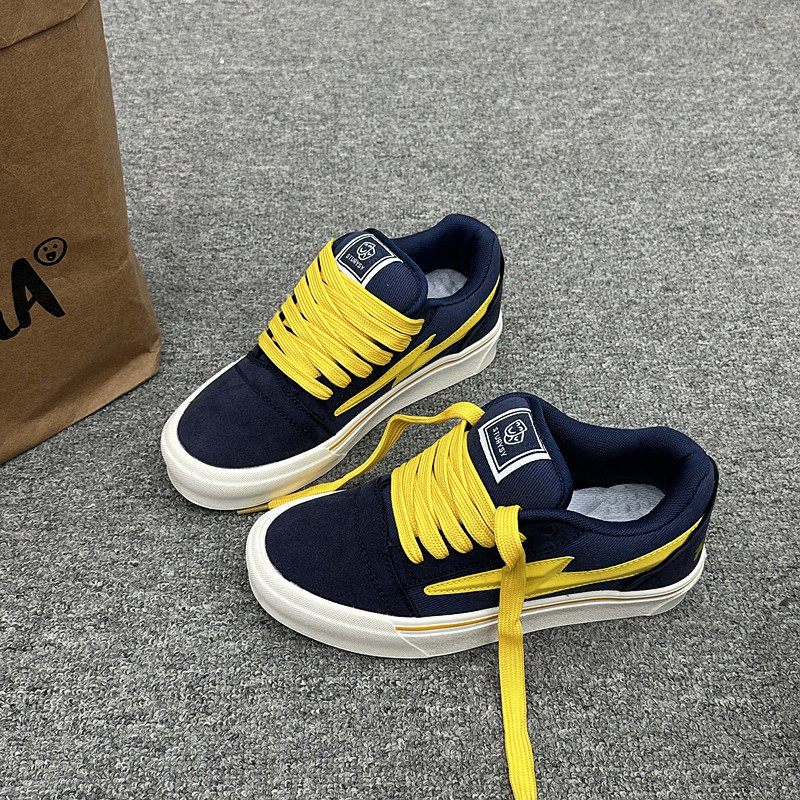 美式深蓝黄低帮滑板鞋男鞋2026春季新款情侣百搭休闲运动帆布鞋女