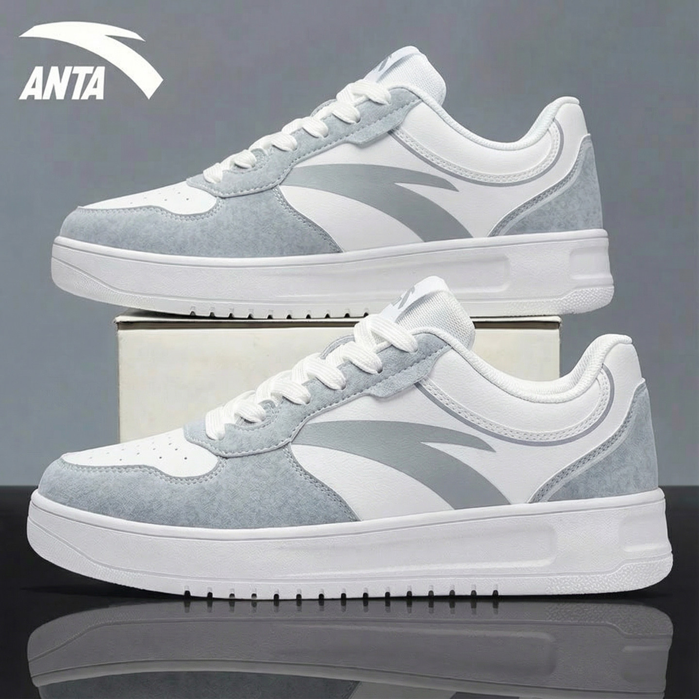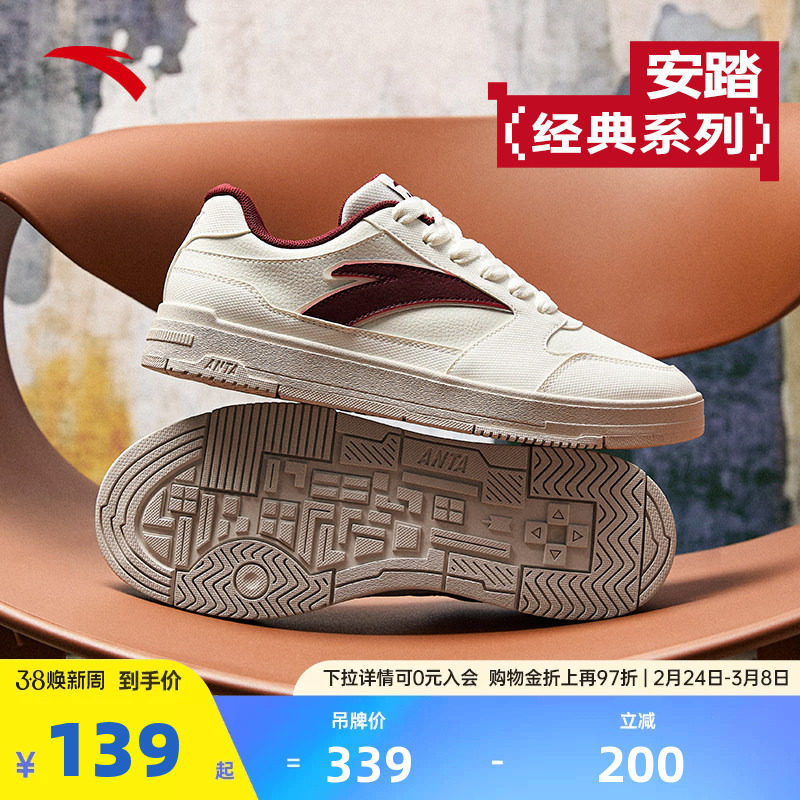 安踏经典撞色小白鞋板鞋男2026春季新款百搭简约运动鞋滑板鞋男鞋
