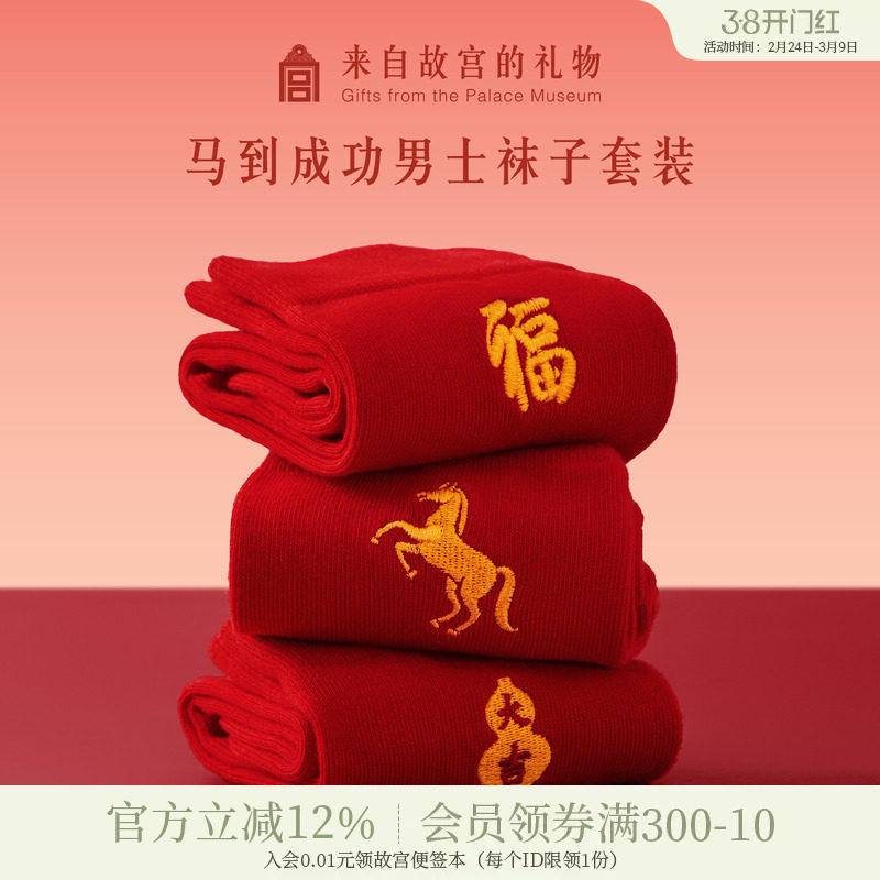 故宫淘宝|福马红袜套装马到成功男士红色袜子礼盒本命年新年礼物