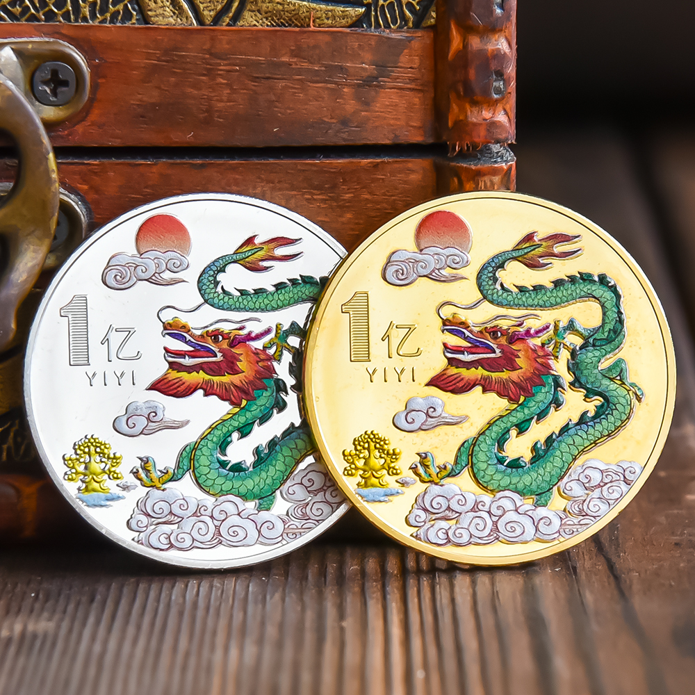 龙腾四海金银币礼物品纪念币中国风复古本命年彩龙金属龙币纪念章