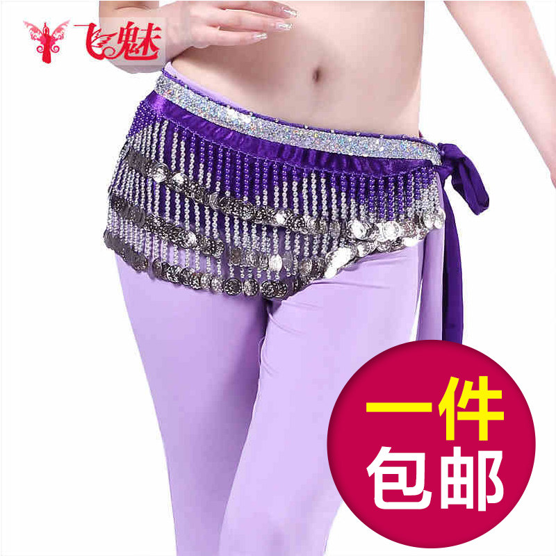 飞魅 肚皮舞腰链 肚皮舞演出练习三排金银币绒布币腰巾腰链 新款
