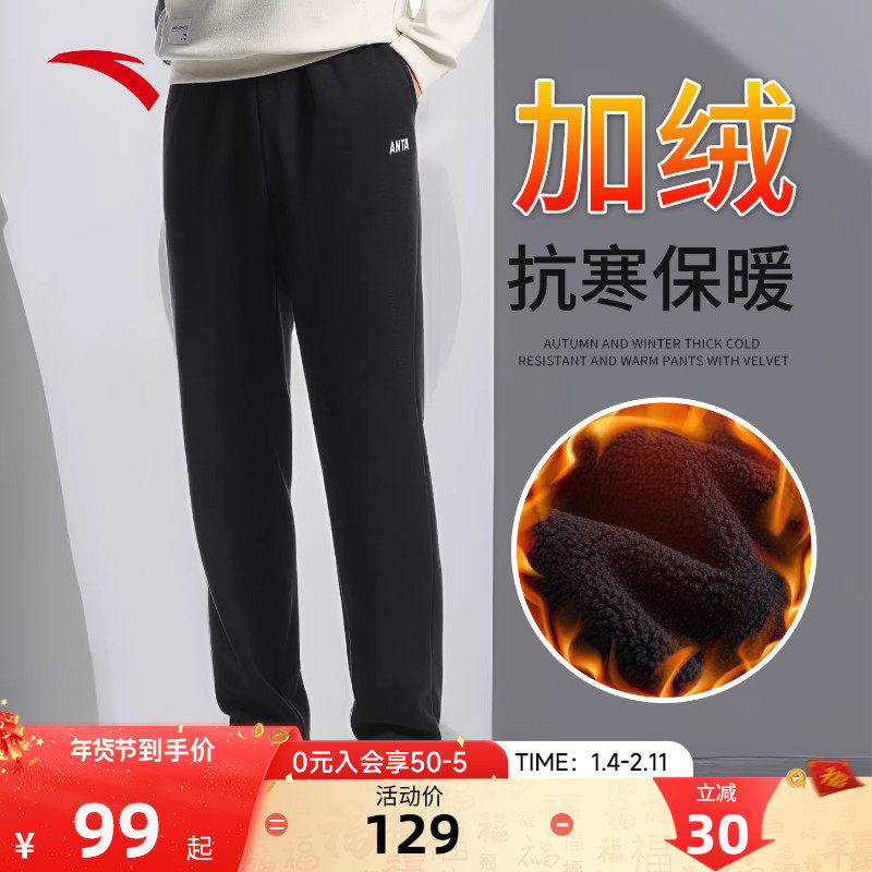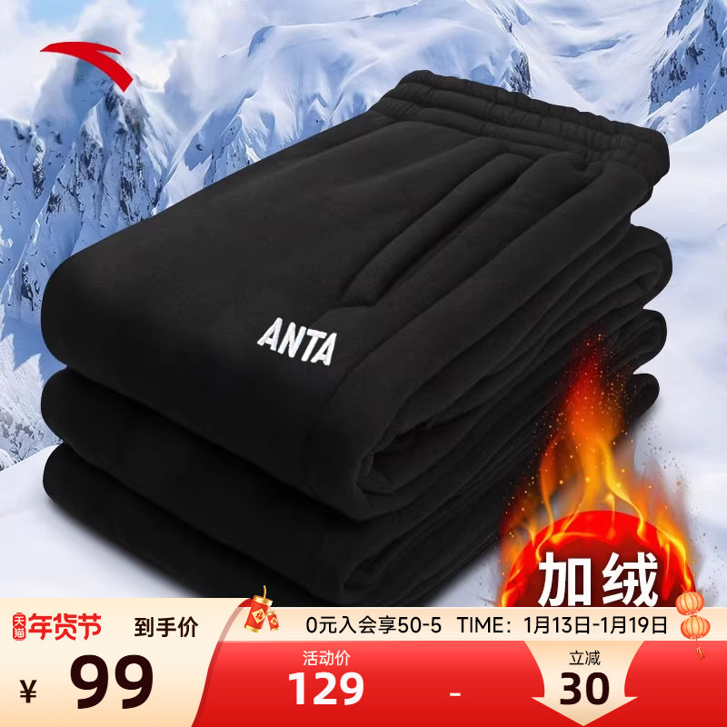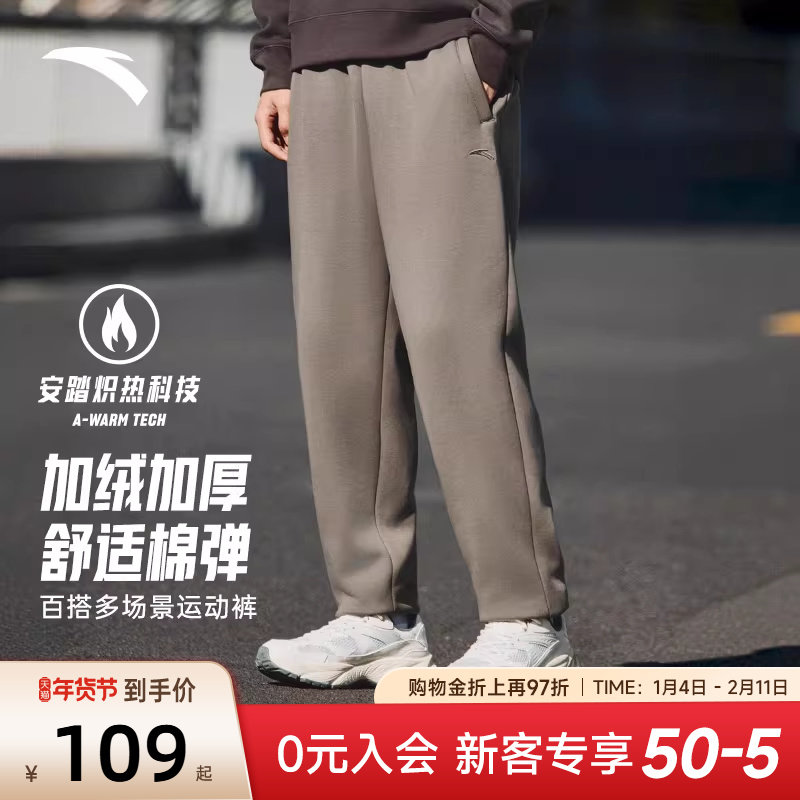 安踏加绒运动裤男官网正品2026冬季新款宽松收口保暖长裤休闲卫裤