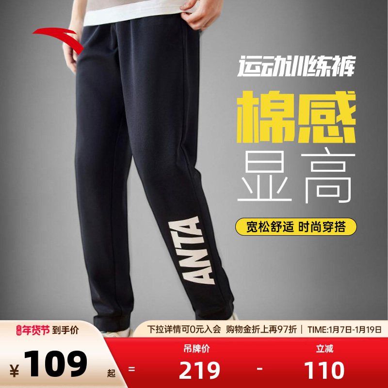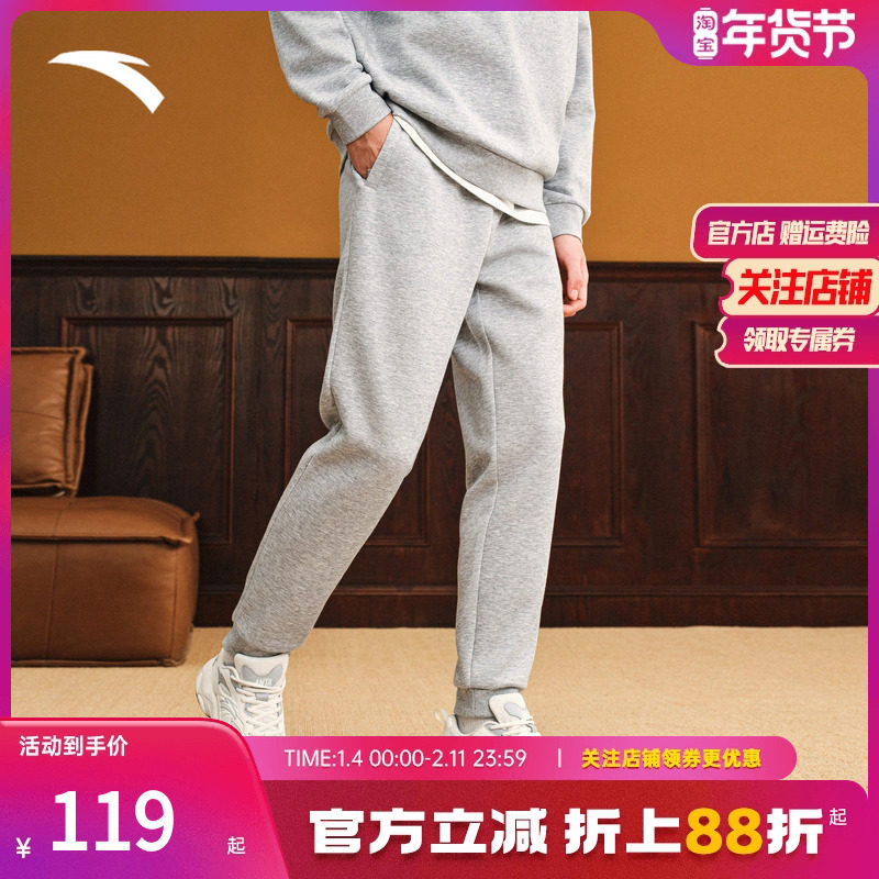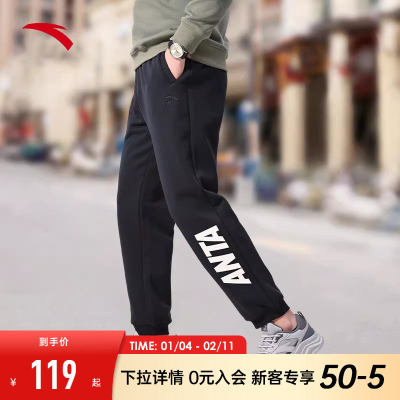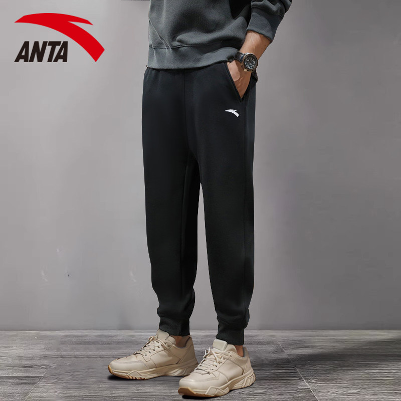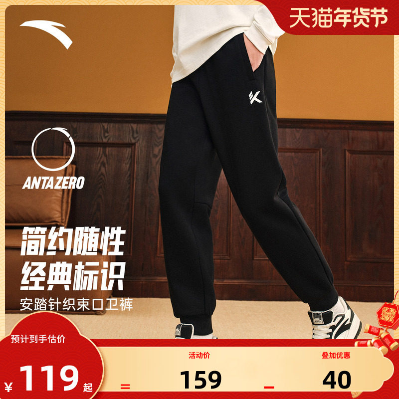 安踏针织运动长裤男士冬季新款收口休闲宽松百搭训练直筒裤男裤子