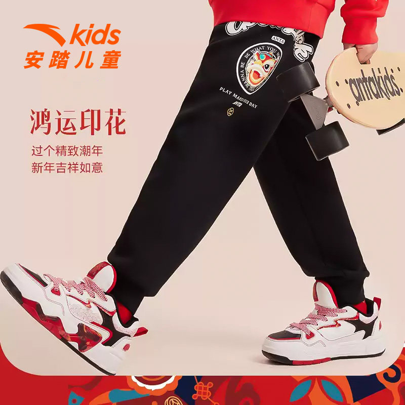 新年龙服安踏儿童长裤运动裤时尚男童裤子收口时尚潮流2025新款