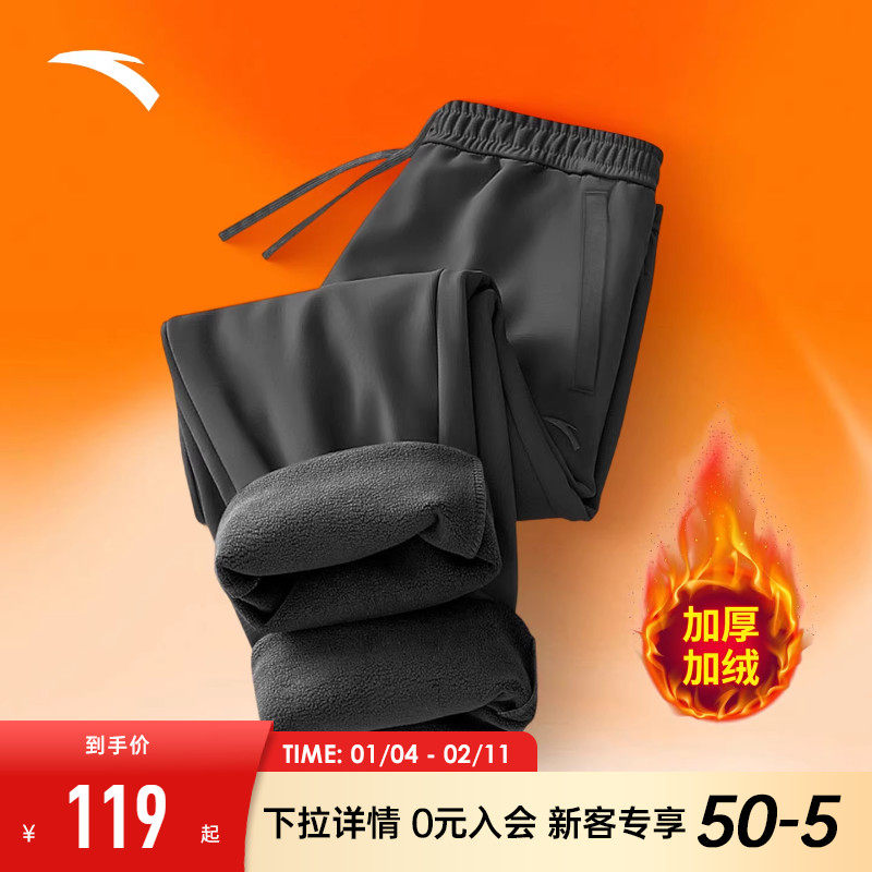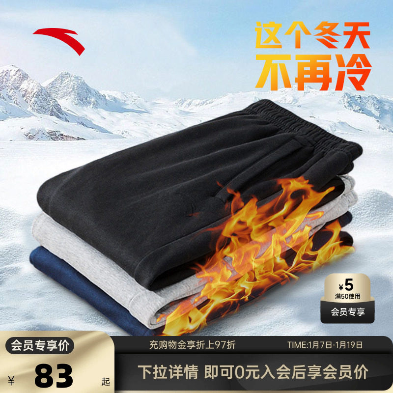 安踏加绒男裤旗舰正品冬季新款宽松收口束脚休闲卫裤加绒保暖长裤