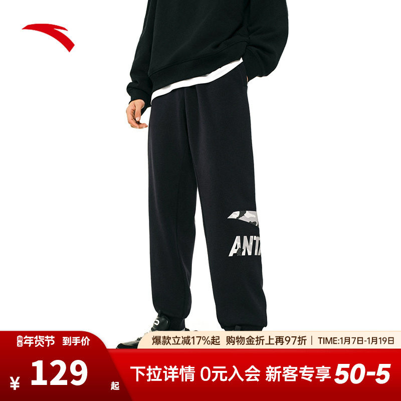 安踏运动长裤男冬季宽松收口美式篮球裤针织休闲裤学生潮流卫裤男