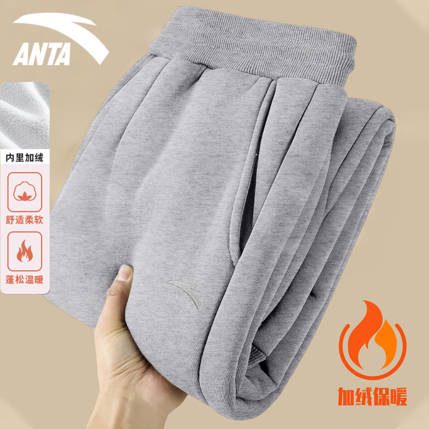 安踏灰色加绒裤男裤2026春季新款宽松休闲长裤针织收口保暖运动裤