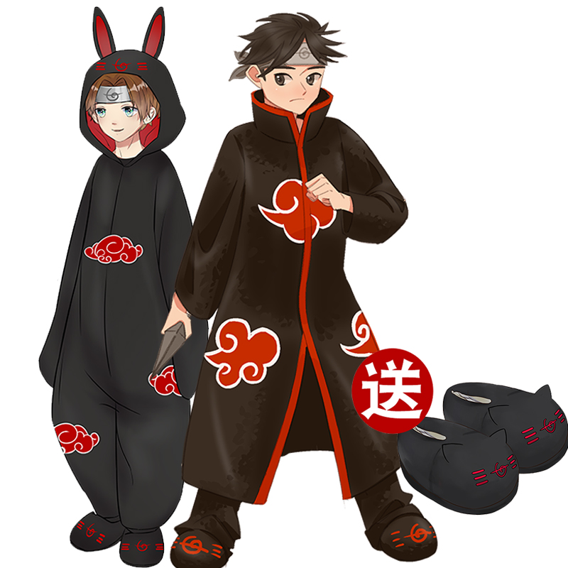 火影忍者成人大码动漫晓连体睡衣男女情侣法兰绒加厚秋冬珊瑚睡袍