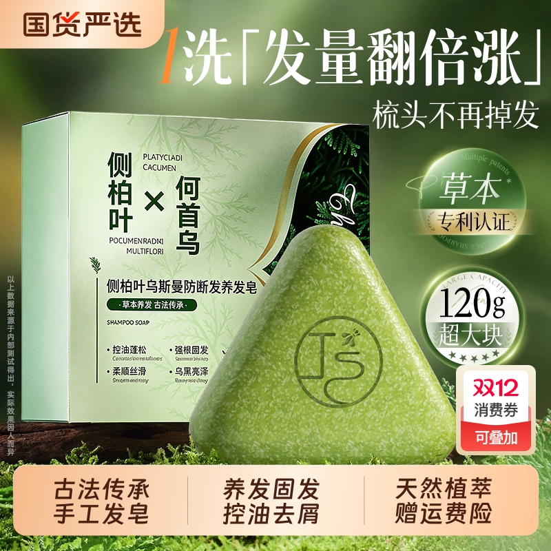 侧柏叶何首乌中药洗发皂纯天然控油香皂新疆乌斯曼洗头香皂旗舰店