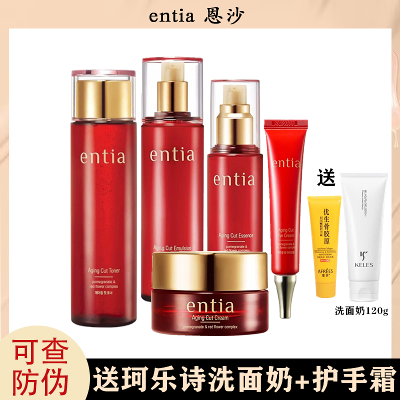 韩国恩沙entia红石榴臻颜柔肤水乳液精华面霜眼霜保湿抗皱套装盒