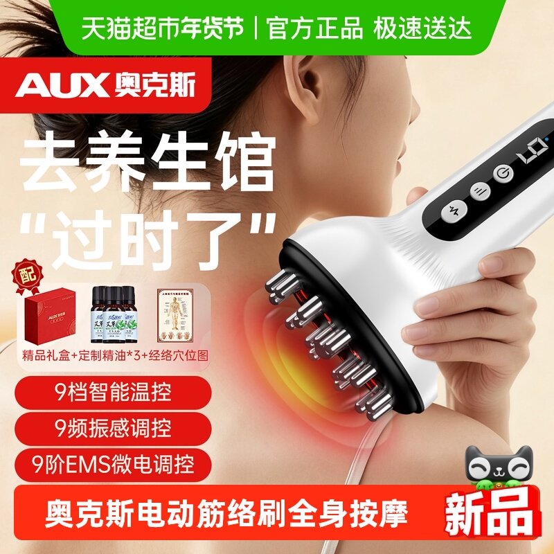 奥克斯电动经络刷全身按摩通用肩颈疏通背部刮痧揉腹仪瘦肚子神器